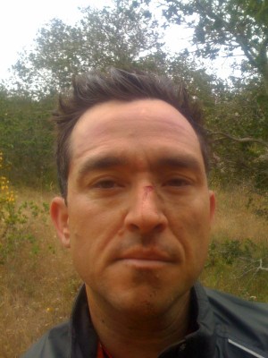 One of the greatest things about Fort Ord is that the conditions change constantly. Rarely is the ride just like it was last time you were there. The rain, or lack of it, will cause the dirt to be hard packed or loose. As will the fact that horses, hikers or other bikers will tear up different parts of the trail. You never really know what the next turn will have in store for you. As I whipped around the trail, I hit a particularly soft patch that I wasn’t expecting. I could tell I was losing traction in my front tire, so I tried to compensate and bring it back onto the trail. This didn’t help, it actually got me into more trouble as my compensation caused my front tire to not only slide but to turn perpendicular to the direction I was traveling = bad when you’re going faster than 2 MPH. I was going fast enough that when my tire slipped out and turned I had nowhere to go but over the bars and onto my face.